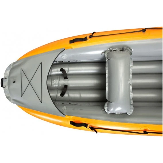 Das neue Gumotex Ontario ist für Mehrtageswanderungen auf dem Fluss mit der ganzen Familie oder mit Freunden sowie mit vollem Gepäck konzipiert worden und lässt sich mit bis zu 6 erwachsenen Personen (600 kg Tragfähigkeit) problemlos paddeln. Das Gumotex Ontario Boot erinnert mit seiner Form und seinen Abmessungen an das Gumotex Colorado Schlauchboot-Raft, jedoch als geschlossene Version. Dank der optimierten Form ist dieses Boot auch trotz seiner Größe sehr schnell und äußerst wendig. Der leicht gehobene Bug ist mit einer extra verstärkten Lage Nitrilon-Material verarbeitet und verhindert das Eindringen von Wasser ins Boot bei der Durchfahrt von Stromschnellen oder beim überfahren kleinerer Stauwehre. Das Ontario Trekking Kanu kann problemlos bis Wildwasser Stufe II gepaddelt werden.